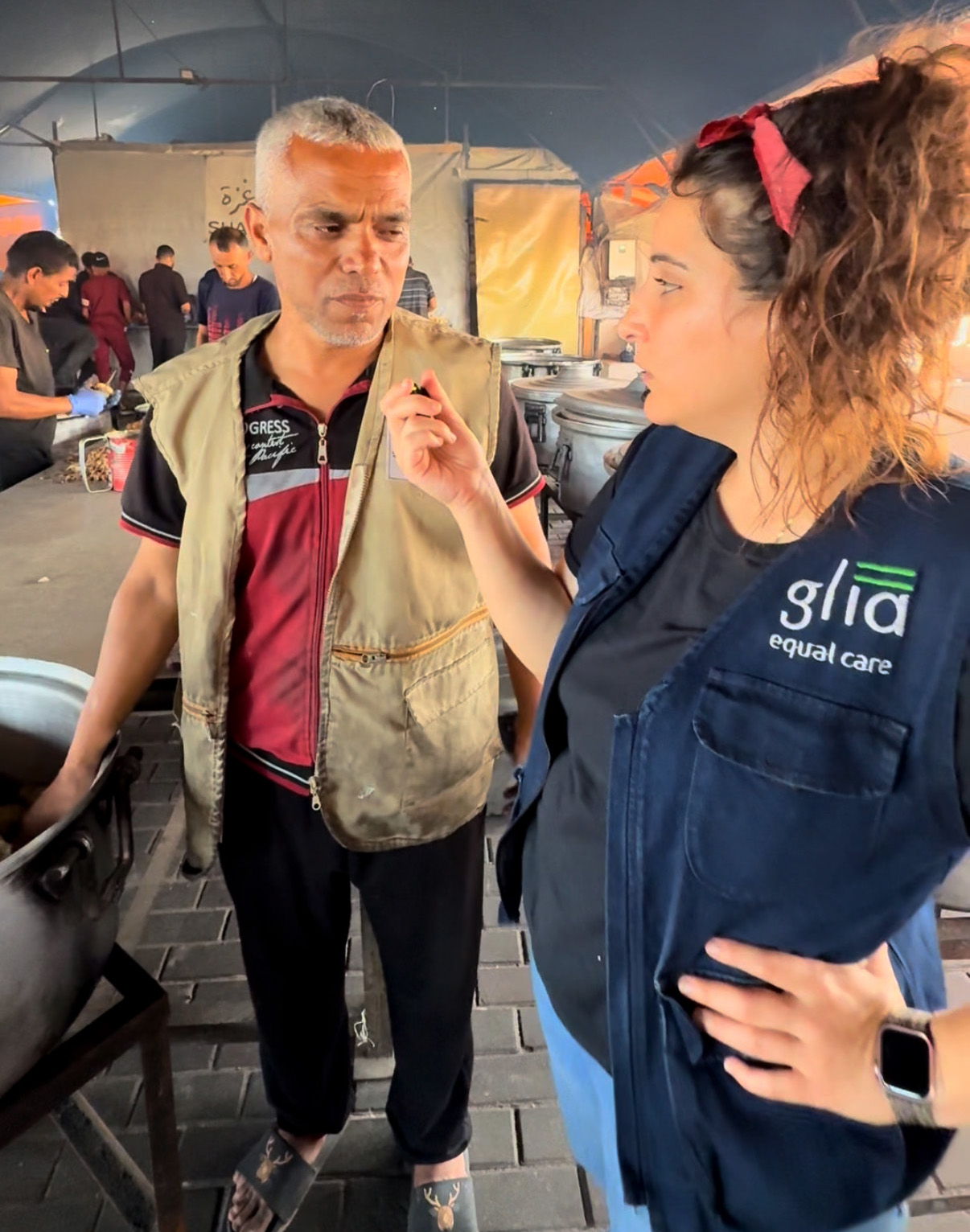 Community kitchens also played a critical role in aid distribution in Gaza. Glia’s head of mission, Moureen Kaki, a Palestinian American, moved from Texas to Gaza more than a year ago to help; she never left. She also volunteers at Shabab Gaza in Khan Yunis.